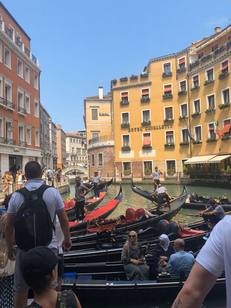 Going back to a brighter point, the one thing you must do in Venice is take a ride in a gondola; its the classic tradition that makes the city so well known. Whether you’re in a couple or just a group of friends wanting some time to just chill and float around without a care in the world its just great to have some guy dressed in black and white (kind of looking like what kids imagine and describe burglars to look like) paddle you through the streets under all the bridges (this also encouraged me to see just how incredible all of the architecture is and made me wonder how on earth half them buildings are still standing). If you ask nicely, you may even get a little serenade to go with the ride, just hope you get a good voiced gondolia or else it may become quite an amusing experience resulting in covering your ears and attracting the attention of passers by. Taking this trip would be incredible at sunset, seeing the bright sky reflecting onto the water and the city being lit up with the underwater lighting. If you go with the main Gondola company departing tours from one of the most used departure points you will be lucky enough to get a view of the Bridge of Sighs, one of the most famous bridges in Venice which is made of white limestone and has stone bars. You’ll be snap happy!