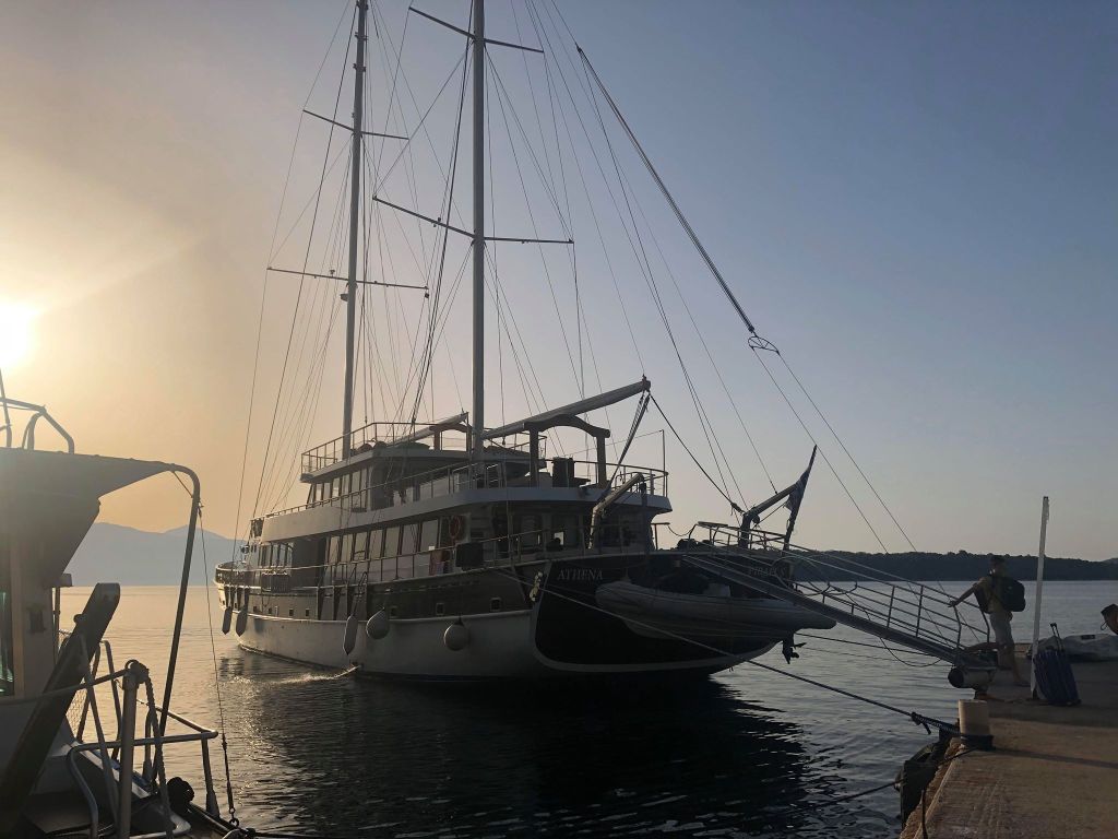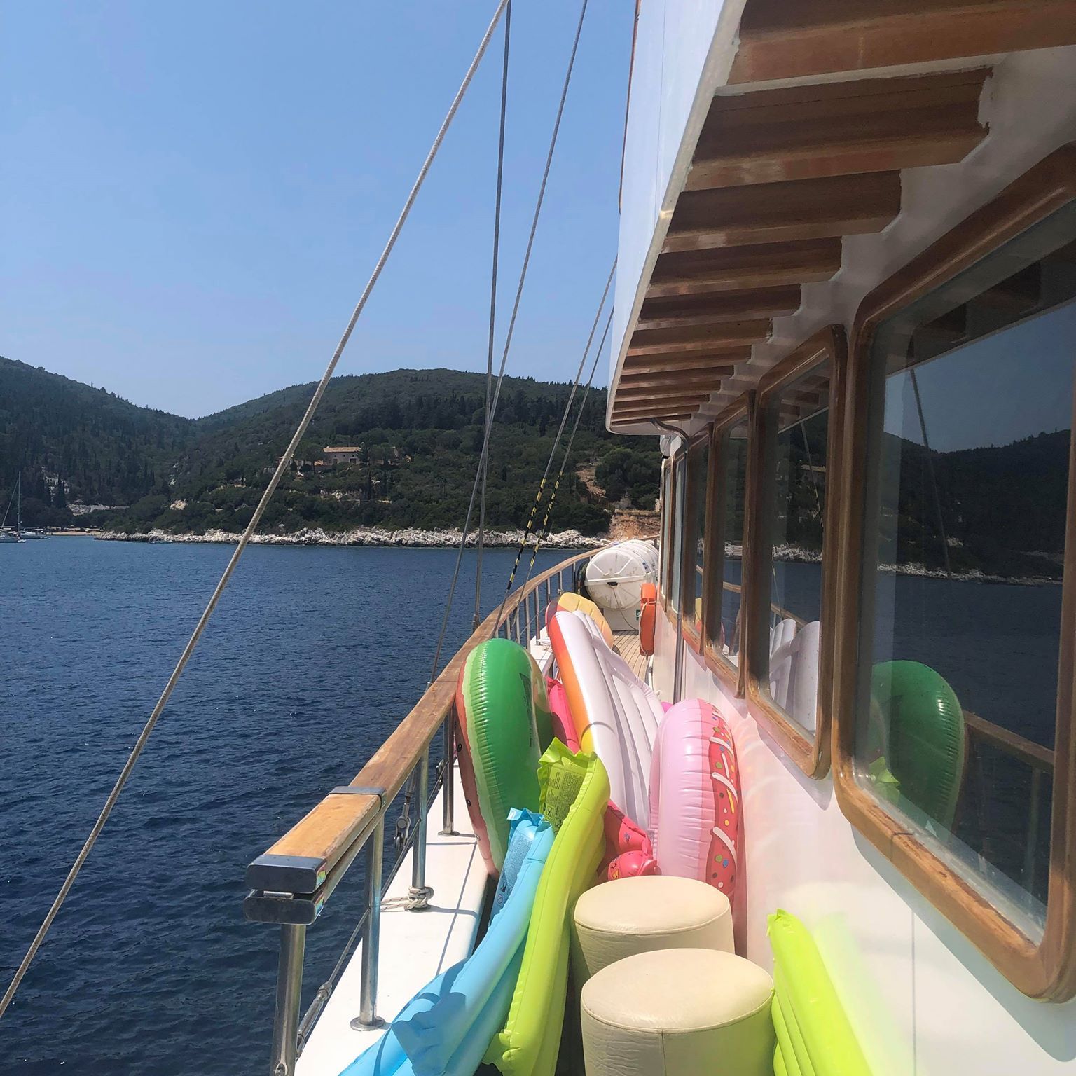 We spent the days at sea, often stopping for a swim on the overload of lilos that were taking up more than a necessary amount of space on the top deck of the boat and diving off into the crystal clear water beneath us and then spending the evenings docked in the marina of a new island which we went on to explore (which didn’t really take up much time as they’re really only the size of a small town) before heading to one of the beautiful Greek taverns to stuff our faces with the finest local dishes on the menu.