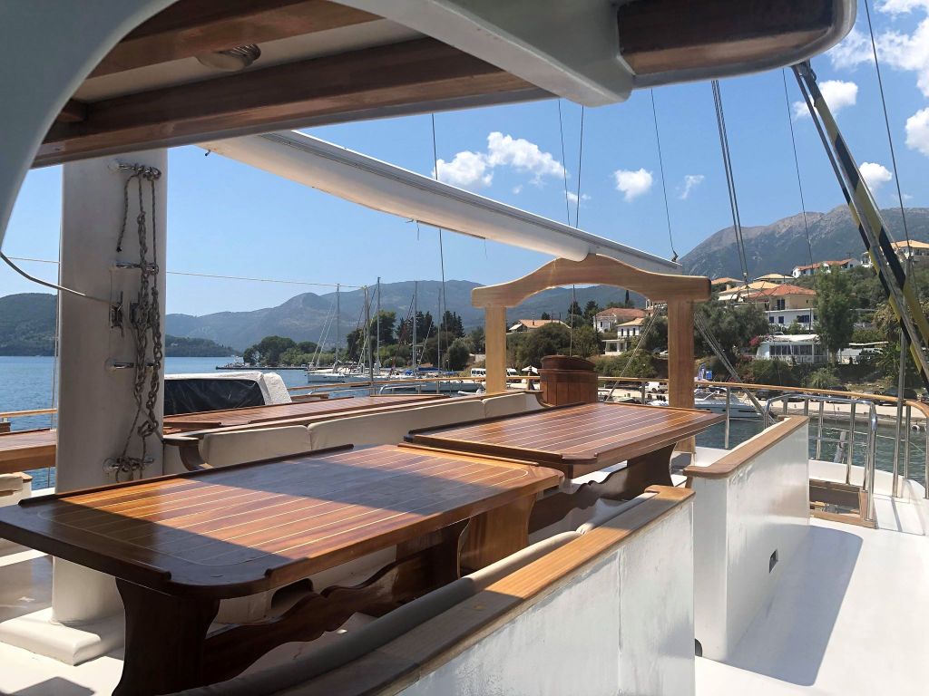 The Greeks are very passionate about their culture and take no nonsense from any tourists so you must always be kind, respectful and obey the regional laws so in return you receive some very welcoming treatment and are classed as family which gives you a feeling of honour. This is what made eating out such a different yet great experience as all the staff couldn’t do enough for you and also why living temporarily on a sail boat was so fun; we were treated as the crew’s family and felt like one of their own as we were included in some of their traditional day to day activities and traditions. We would start each day with a freshly prepared breakfast buffet made by the crew and also a similar style lunch of cooked and cold food and we constantly had drinks served to us which in a way made it feel like 5* luxury.